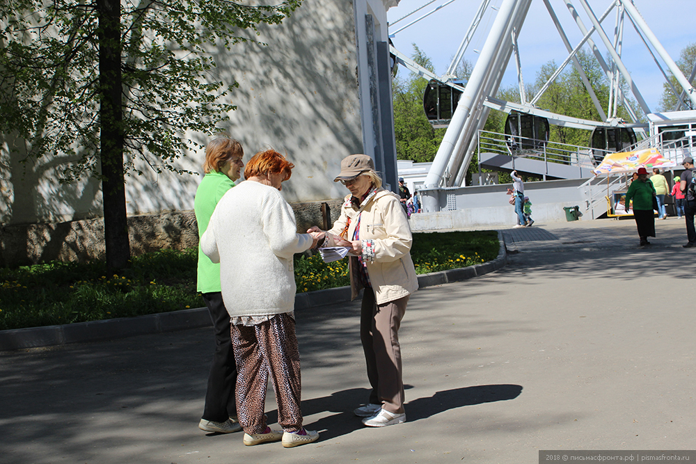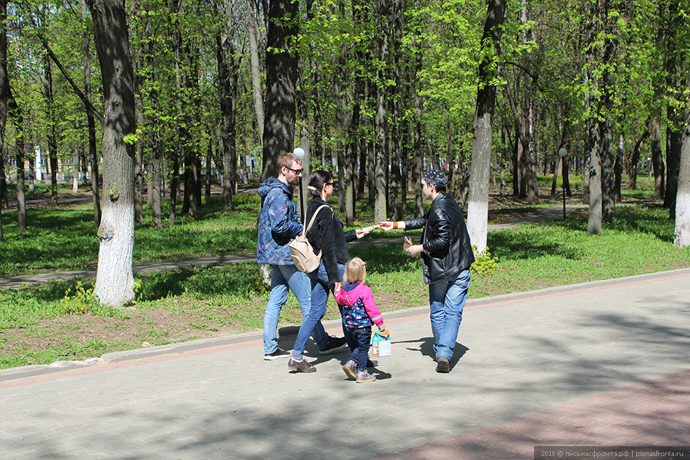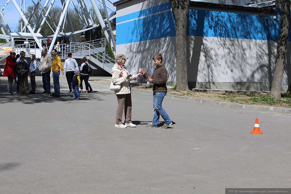 Отдыхающие в парке люди с радостью принимали поздравления и предложение прочитать «письмо с фронта». Дети просили еще писем для своих школьных друзей. Тех, кто вообще отказывались брать письма, были единицы. Некоторые люди сразу разворачивали письма и начинали их читать. Одна девушка зачитала письмо вслух для своей компании. Всего за два часа были розданы все письма.