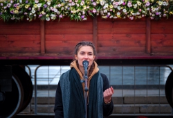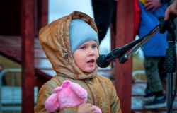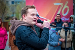 Жители города с удовольствием подпевали, вызывались рассказать стихотворение. Очень много детей с большим желанием читали стихи о Победе.