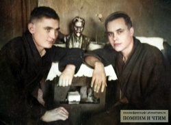 На фото — с другом в госпитале (Лукашов слева, осень 1944 года, г. Энгельс).