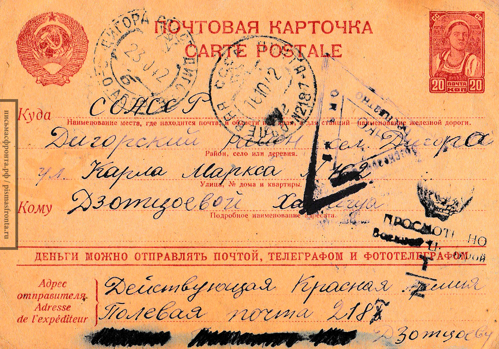 В 1942 году переехал с матерью жить в с/Дигора Дигорского р-на, где был призван в ряды РККА.