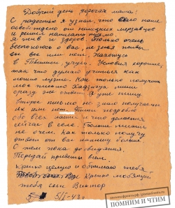 В октябре 1945 года из Кенигсбергского военного округа переехал вместе с частью в Минский военный округ. По дороге заболел и лёг в Минский окружной госпиталь, где пролежал до 11 февраля 1946 года. 11 февраля 1946 года демобилизован из рядов РККА по болезни. 872 отдельный зенитно-артиллерийский дивизион, где я служил, сейчас находится в Минском военном округе в гор. Борисове.