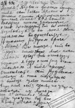 Надпись подпольщицы П. Савельевой на стене тюремной камеры в Луцке