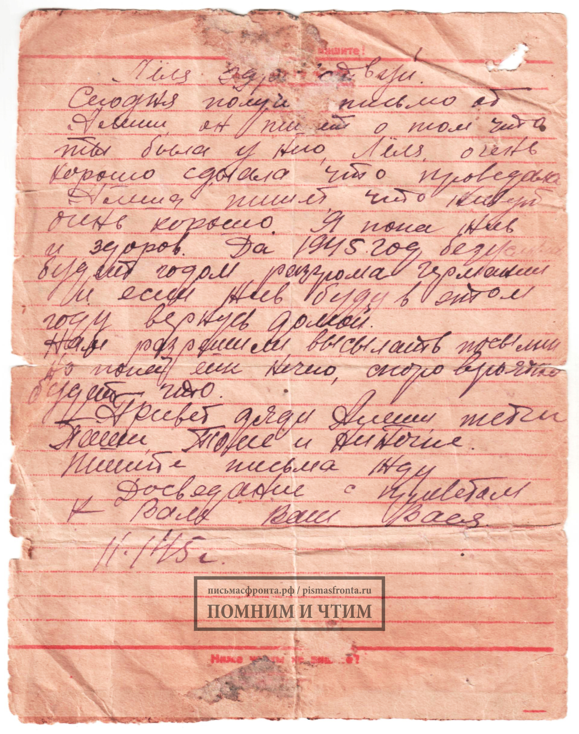 Уважаемые посетители, вы можете присылать «письма с фронта» для размещения на сайте на адрес: letter@pismasfronta.ru
