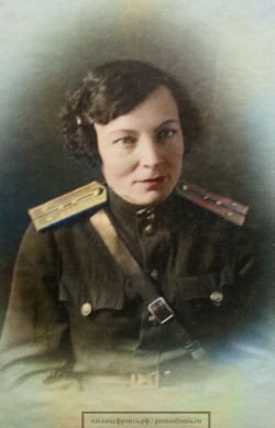 Это моя бабушка. Непосредственного участия в боевых действиях она не принимала — не пустили. Начальник штаба СИБВО сказал ей:Мать, твое дело сыновей растить — сейчас это важнее для страны. И товарищ старший политрук («мать») осталась на работе в разведывательном отделе штаба и продолжала преподавать на курсах младших политруков военную географию и международное положение.