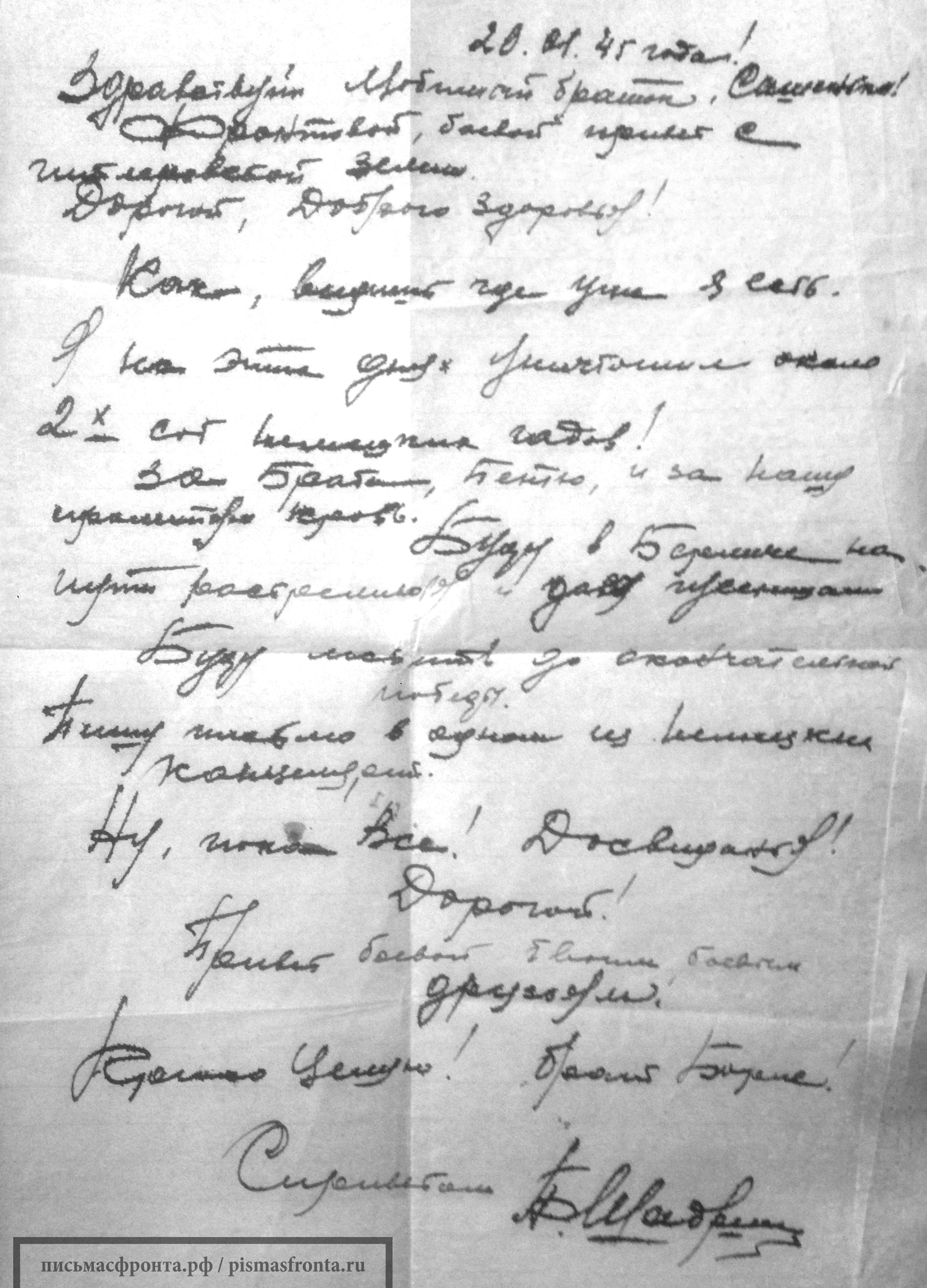 - Участвовал в прорыве немецкой обороны западнее реки Нейсе, в окружении и штурме Берлина. Участвуя в атаке за овладение пригородом Тельтов, уничтожил 1 танк, 2 бронетранспортёра и до роты пехоты противника.