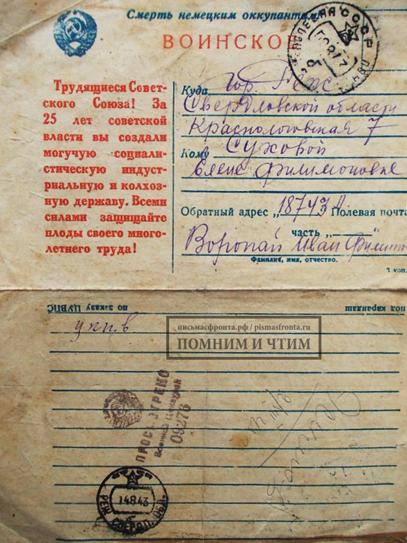 Надпись подпольщицы П. Савельевой на стене тюремной камеры в Луцке