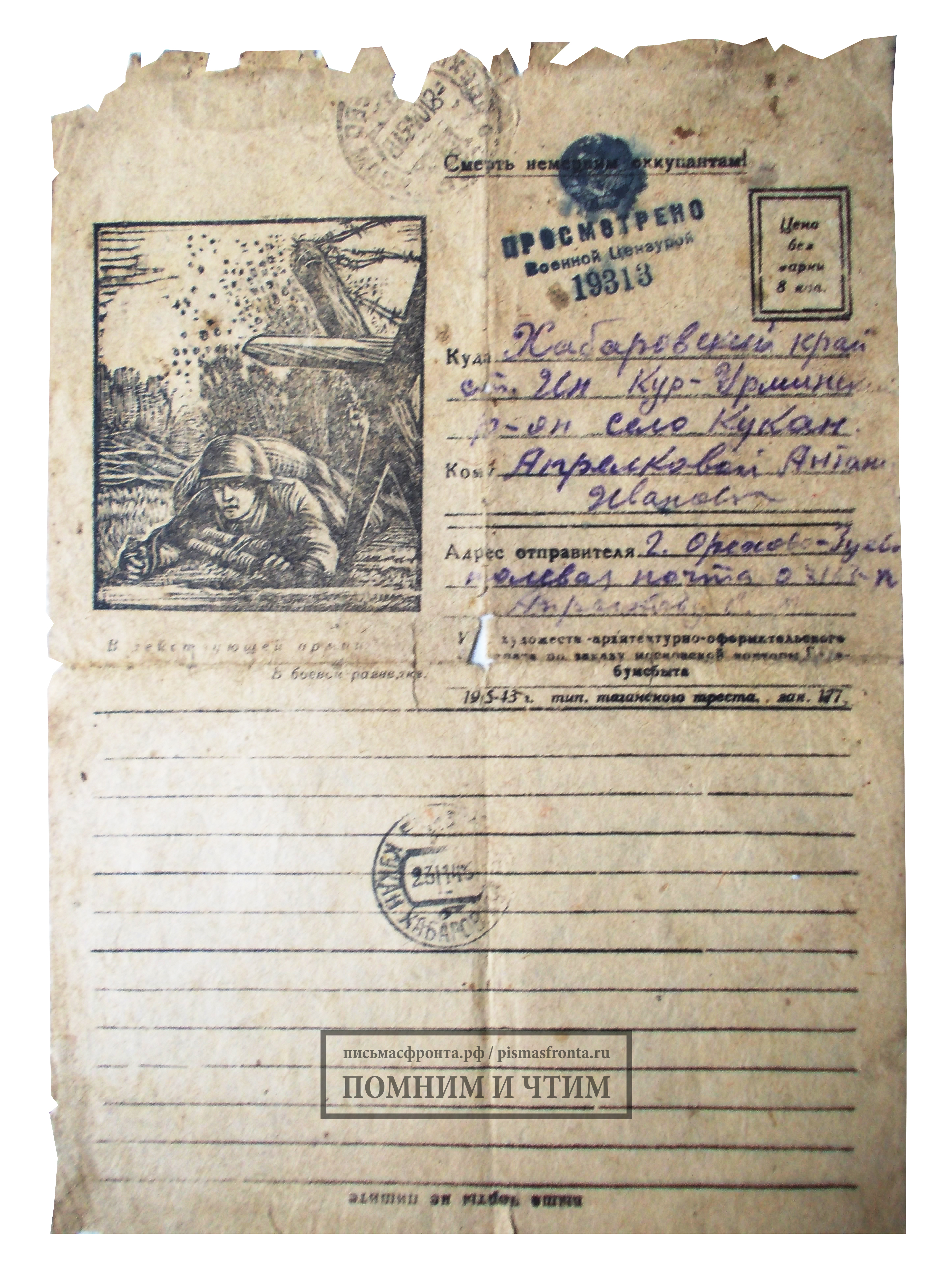 Уважаемые посетители, вы можете присылать «письма с фронта» для размещения на сайте на адрес: letter@pismasfronta.ru
