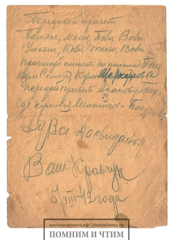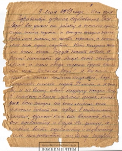 Надпись подпольщицы П. Савельевой на стене тюремной камеры в Луцке